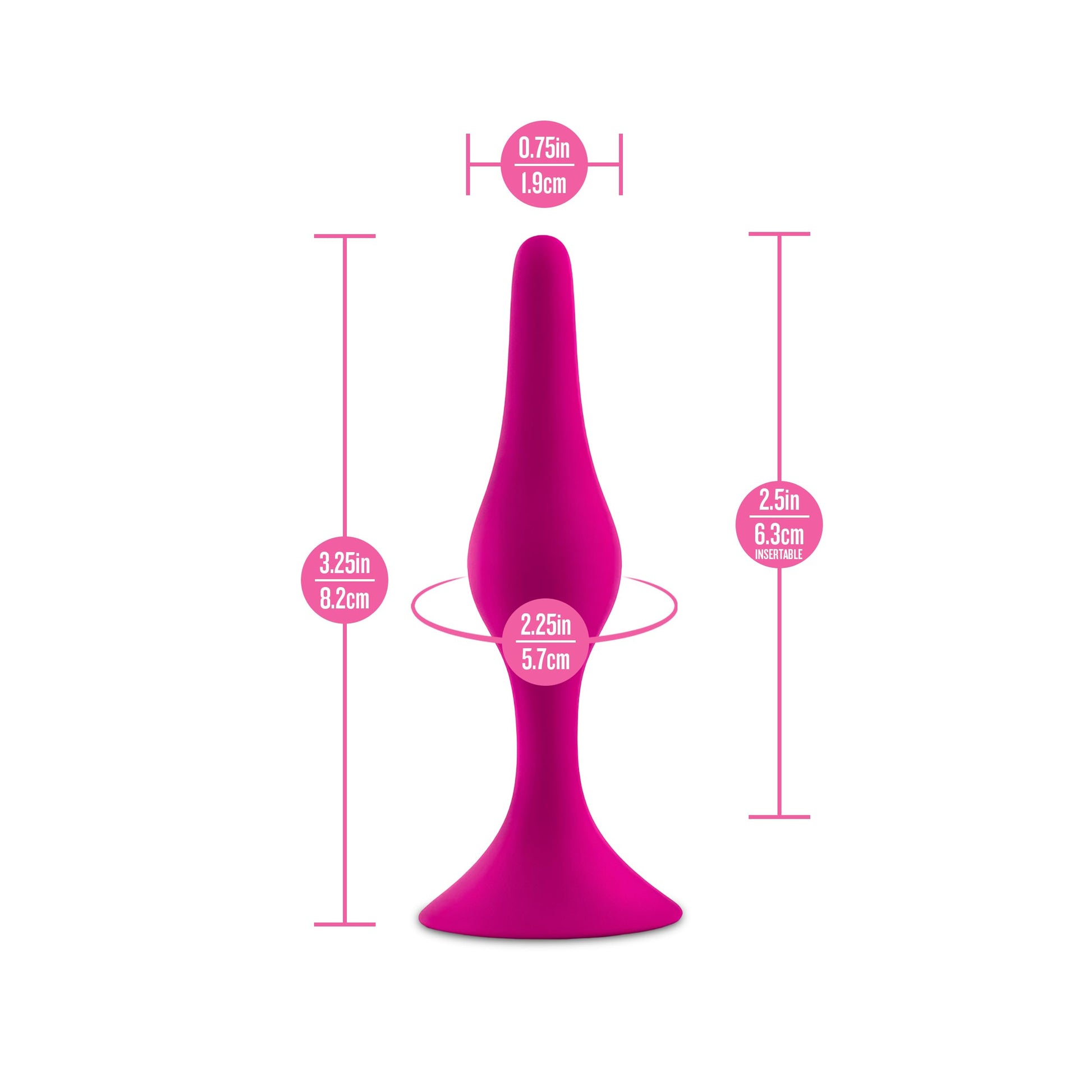 Blush Luxe Beginner 3.25" Silicone Butt Plug - Satin Smooth Anal Trainer with Soft Tapered Tip and Suction Cup Base - Slim Bum Plug Adult Sex Toy for Women, Men & Couples - (Pink)