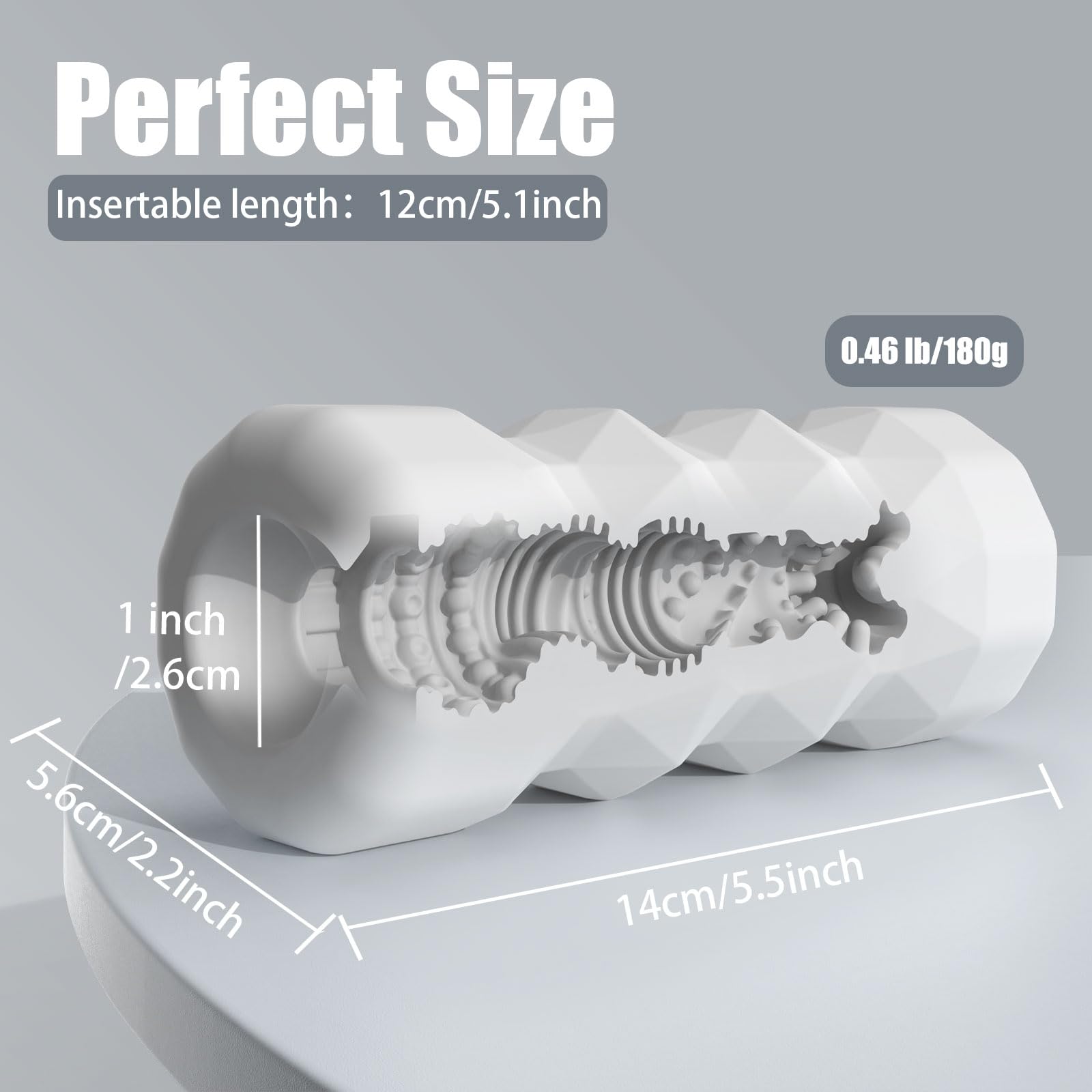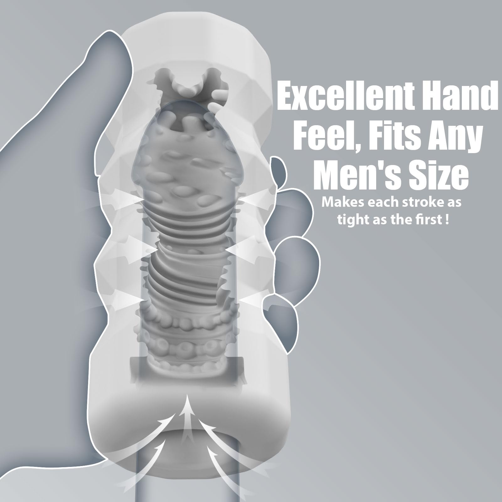 - 【Diamond Cut Design & Perfect Size】 This male sex toys measures 5.5 x 2.2 inches, with an insertable length of 5.1 inches. The strechy entrance not only allows for easy insertion, but also increases the sucking sensation as the you goes deeper. Diamond cut exterior provides a more comfortable feel of grip. The lightweight of 0.46 pounds allows you to fully immerse yourself in the pleasure of masturbation without feeling fatigued.